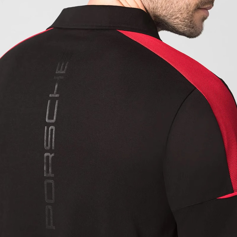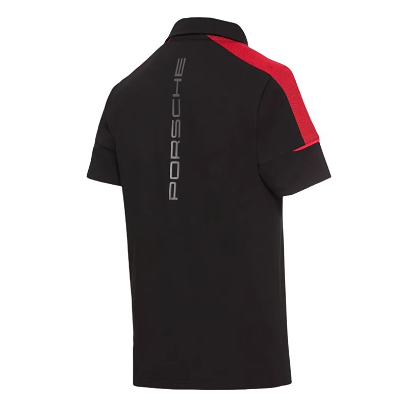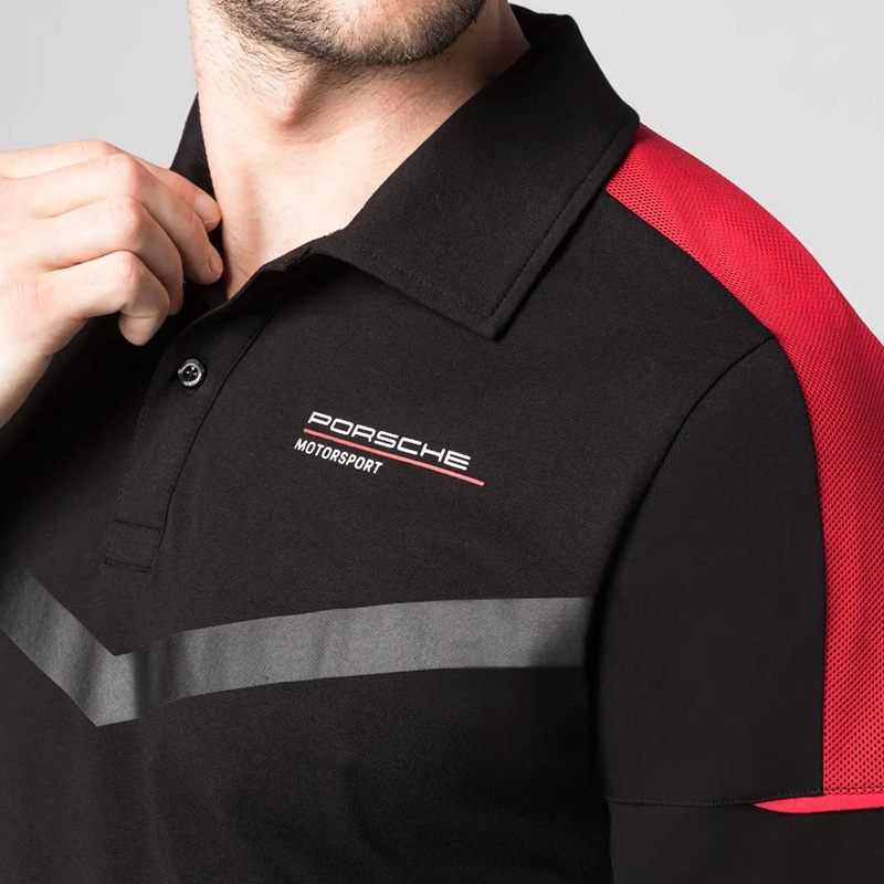 森洋服饰凭借精湛工艺与对品牌精神的精准把握,成功为PORSCHE保时捷打造专属定制polo衫工作服。 在款式设计上,此款polo衫以经典黑色为主色调,沉稳大气,契合保时捷高端、专业的品牌形象。肩部及部分细节处采用亮眼红色拼接,既打破黑色的沉闷,又呼应了保时捷赛车元素中的激情与速度感,让整体造型更具视觉冲击力与运动活力。正面胸前的“PORSCHE MOTORSPORT”标识清晰醒目,背面纵向排列的“PORSCHE”字样,强化品牌识别度,彰显品牌荣耀。同时,领口的纽扣设计、胸前独特的V型装饰等细节,都经过精心考量,既保证穿着的实用性,又增添了服饰的时尚感与设计感。 在面料选择上,森洋服饰选用高品质速干运动透气面料,确保穿着者在工作时能保持舒适干爽,即使长时间穿着也不会有闷热感,充分满足保时捷工作人员在各类工作场景下的穿着需求,无论是日常办公还是参与品牌相关活动,都能展现出良好的精神风貌与专业形象。此次定制,不仅是服饰的制作,更是森洋服饰对保时捷品牌文化的深度诠释与精彩呈现,为保时捷的品牌传播与形象塑造助力。