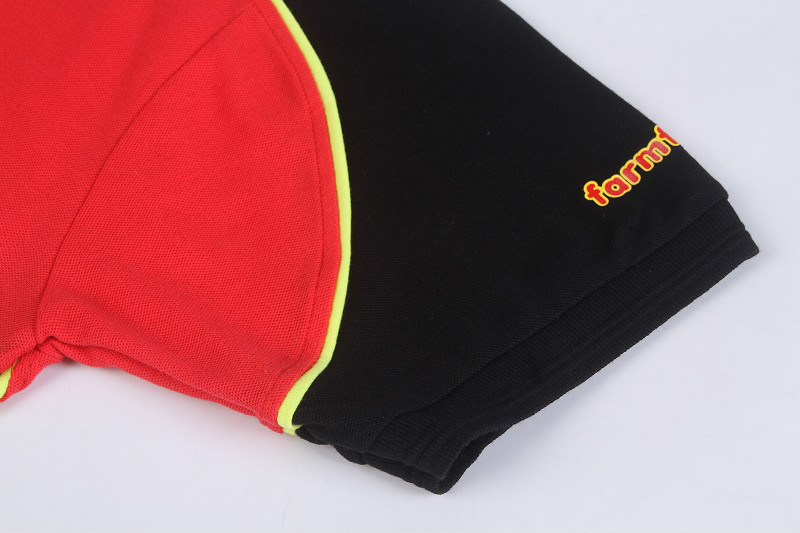 Farmfoods作为食品零售领域的知名品牌,对员工工装的“品牌识别度”与“场景实用性”有着双重高要求。森洋服饰深入调研其品牌基因后,以Farmfoods标志性的红黑黄三色为核心设计语言:大面积红色主调传递品牌的活力与亲民感,黑色袖身搭配黄色线条点缀,既强化视觉层次,又暗合食品行业对“安全、专业”的潜在诉求。正面与背面重复呈现的“farmfoods”品牌标识,形成360°无死角的品牌曝光,让员工在门店服务、社区推广等场景中,都能成为品牌的移动宣传窗口。