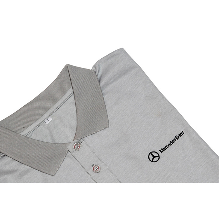 奔驰作为汽车领域的豪华品牌,在高尔夫这类高端运动场景中,对员工服饰的“品牌奢华感”与“运动实用性”有着双重严苛要求。森洋服饰以浅灰为主色调,搭配深灰领口、袖口细节,既契合高尔夫运动的优雅格调,又传递出奔驰品牌的沉稳奢华。经典Polo版型适配高尔夫运动的着装礼仪,三颗纽扣设计方便球员根据体感调节,细节处的撞色包边工艺精致,彰显品牌对品质的极致追求。