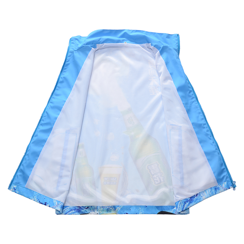 雪花啤酒作为国内啤酒行业的领军品牌,在终端营销场景中对员工服饰的“品牌识别力”与“场景吸引力”有着迫切需求。森洋服饰以雪花啤酒“勇闯天涯”系列的品牌基因为核心,采用渐变蓝为主色调,从视觉上呼应“冰雪、酷爽”的品牌调性。正面的“雪花啤酒 SNOW”标识简洁明了,快速传递品牌身份;背面则以大幅“勇闯天涯”产品视觉呈现,将工装转化为移动的品牌广告,在餐饮终端、户外推广等场景中形成强烈的视觉冲击,有效提升品牌曝光度与产品记忆点。