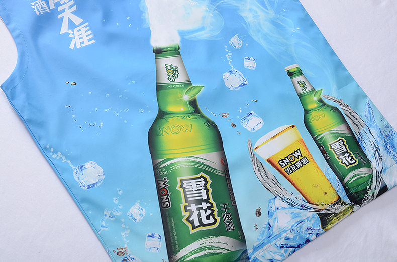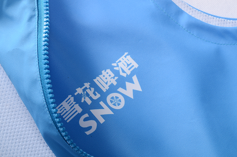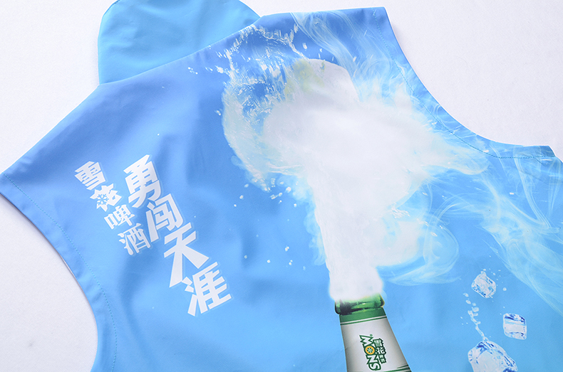 功能设计上,森洋服饰选用轻便透气的面料,适配啤酒行业终端营销的高频次活动场景,确保工作人员长时间穿着仍能保持舒适。马甲版型兼顾实用性与灵活性,方便员工在配送、促销、活动执行等多场景中自由行动。底部的雪山图案细节,进一步强化“勇闯天涯”的品牌故事,让工装成为品牌理念的具象载体。
