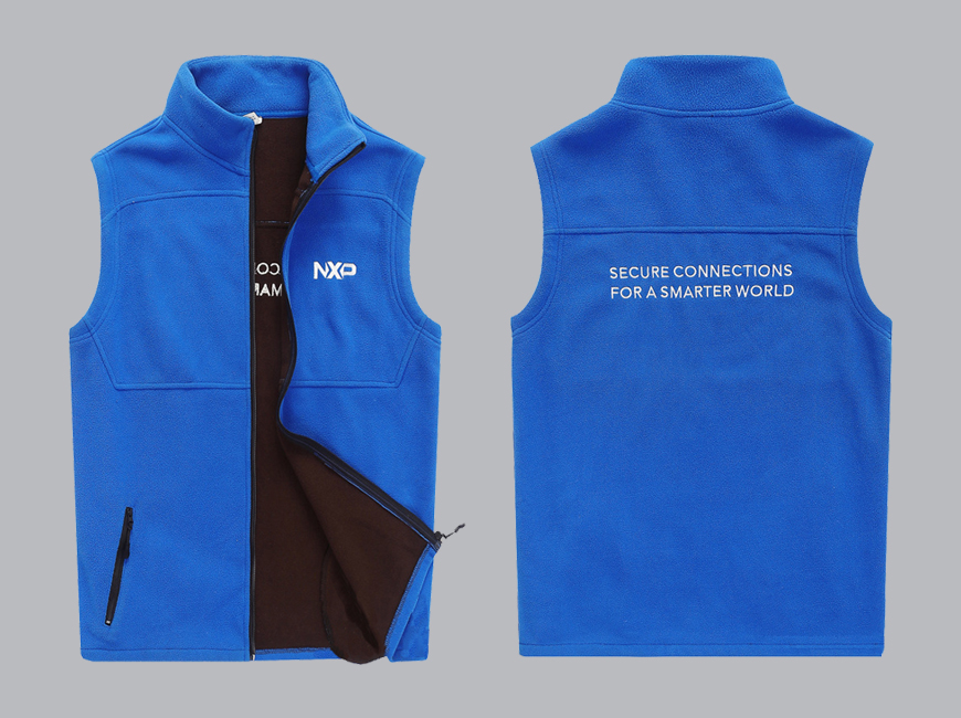NXP恩智浦半导体作为全球安全连接解决方案的领导者,以“SECURE CONNECTIONS FOR A SMARTER WORLD”为品牌愿景,在半导体行业拥有举足轻重的地位。森洋服饰在接到定制需求后,深度调研NXP的品牌文化、行业属性与员工工作场景,最终选定**摇粒绒材质**打造马甲工作服——该材质兼具保暖性与透气性,适合半导体行业研发、生产、商务等多场景穿着,即使在实验室、办公楼等不同温度环境下,也能为员工提供舒适穿着体验。