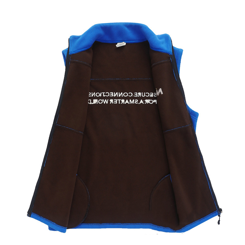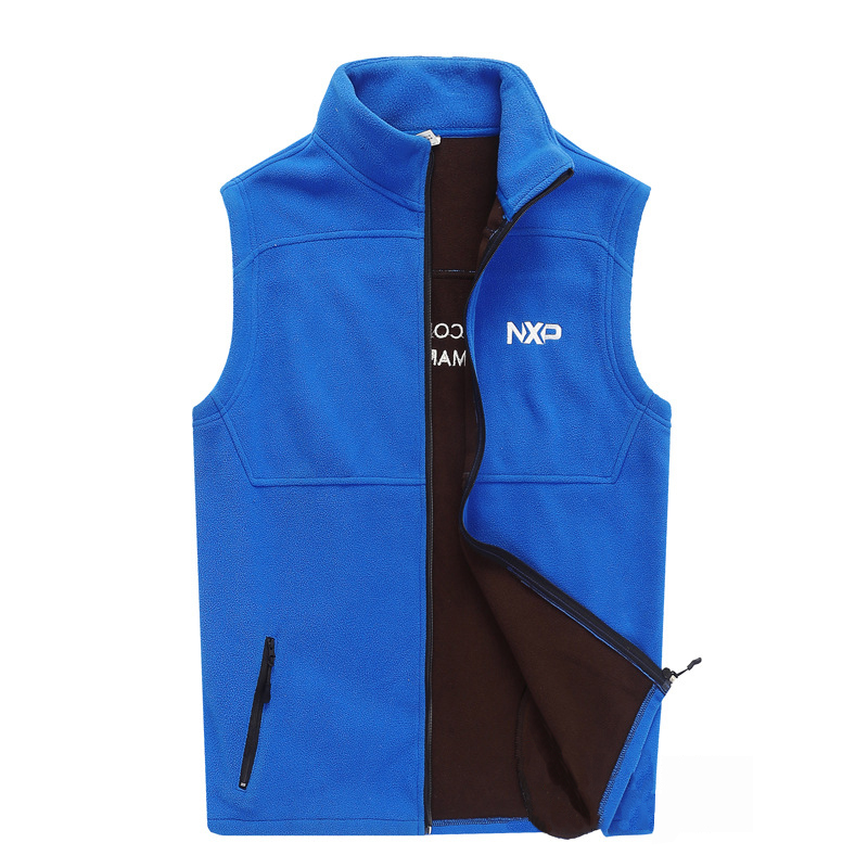 在企业品牌建设与员工关怀的双重需求下,森洋服饰与全球知名半导体企业**NXP恩智浦半导体**达成深度合作,为其打造了一系列兼具功能性与品牌辨识度的定制工作服,其中这款蓝色摇粒绒马甲便是经典案例之一。